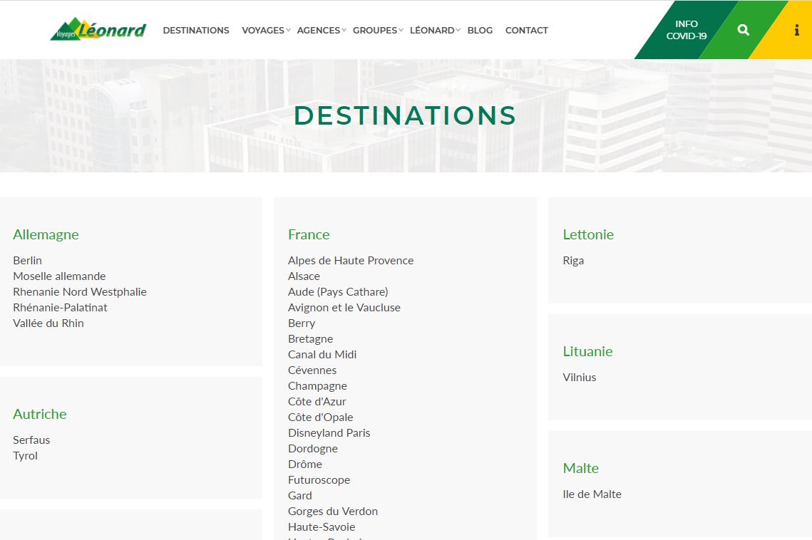 S’il est possible d’effectuer une recherche sur base de la destination via la page Recherche, vous pouvez aussi cliquer sur le menu Destinations pour découvrir la liste des destinations par pays. Cet outil est très pratique pour les voyageurs en besoin d’inspiration.