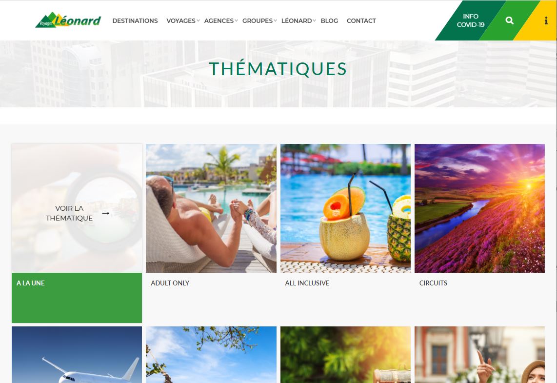 Vous cherchez une thématique de voyage spécifique ? Des voyages en solo, en famille, des randonnées à pied, culturels, en all inclusive, en avion, … découvrez toutes nos thématiques de voyages via le menu Voyages > Thèmes. Retrouvez un aperçu de ces thématiques au milieu de notre homepage.
