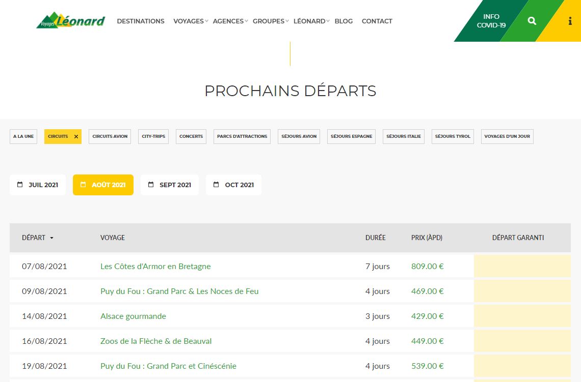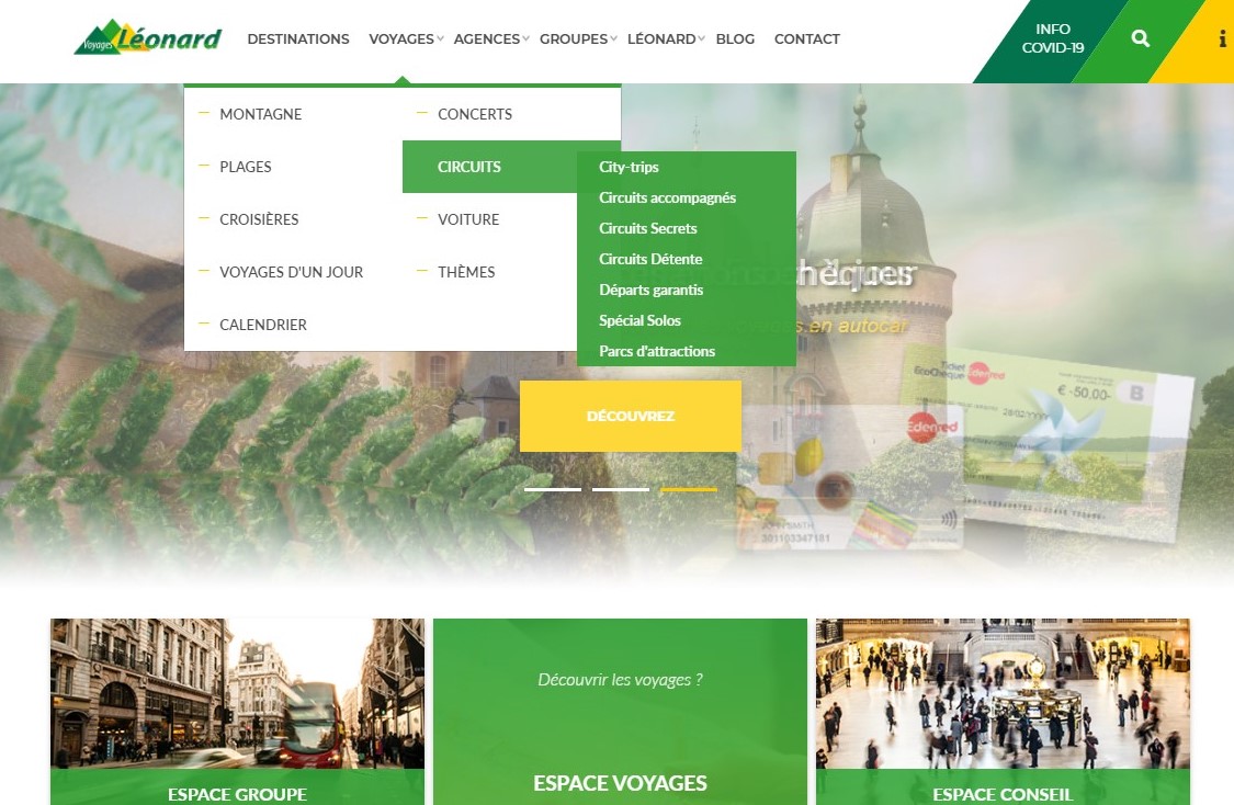 Via le menu Voyages, vous avez la possibilité de découvrir toute la gamme de nos voyages. Des circuits, des séjours, en autocar ou en avion, des croisières, des voyages d’un jour, des vacances en voiture, des concerts, ce menu vous redirige directement sur base du type de voyages.